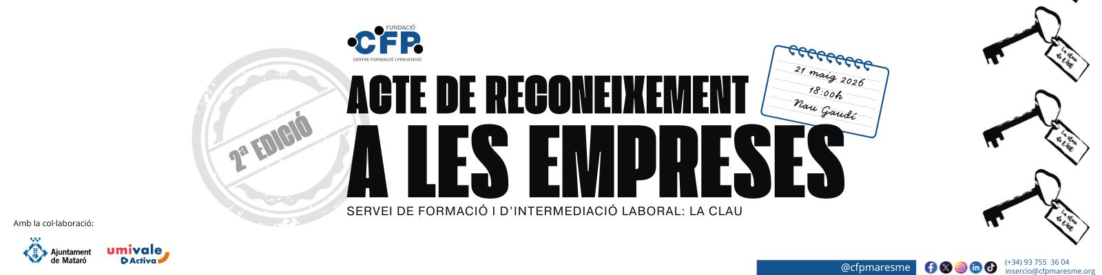 28 abr. 📢 📢 INSCRIU-TE I RESERVA’T EL DIA!!!! Acte de RECONEIXEMENT A LES EMPRESES