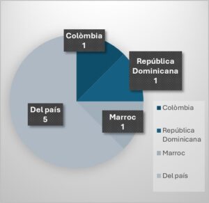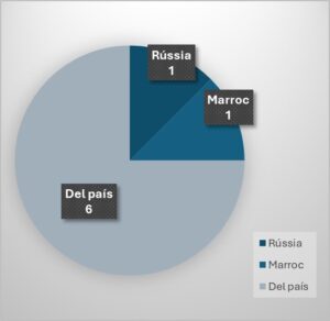 Una altra dada interessant, de nou, és la que té a veure amb les nacionalitats. Hi ha una persona de Marroc i una de Rússia. La resta han sigut del país.